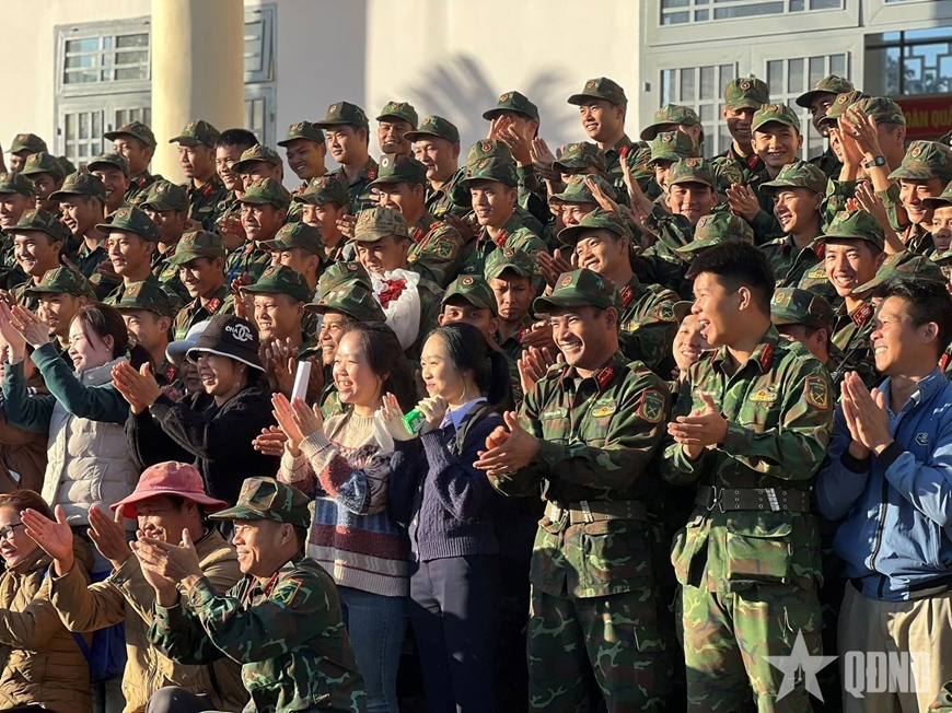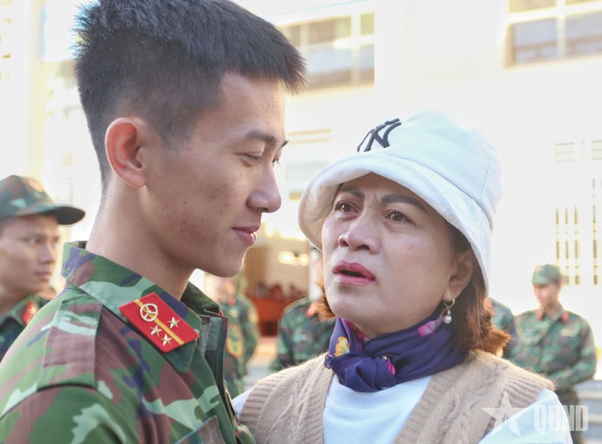 | Ánh mắt xúc động của người dân dành cho cán bộ, chiến sĩ trước lúc chia tay. |