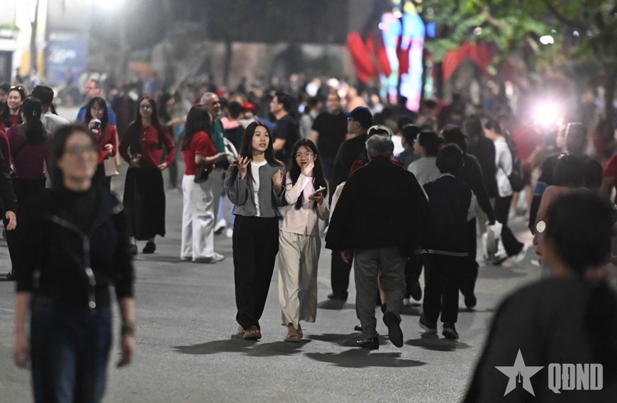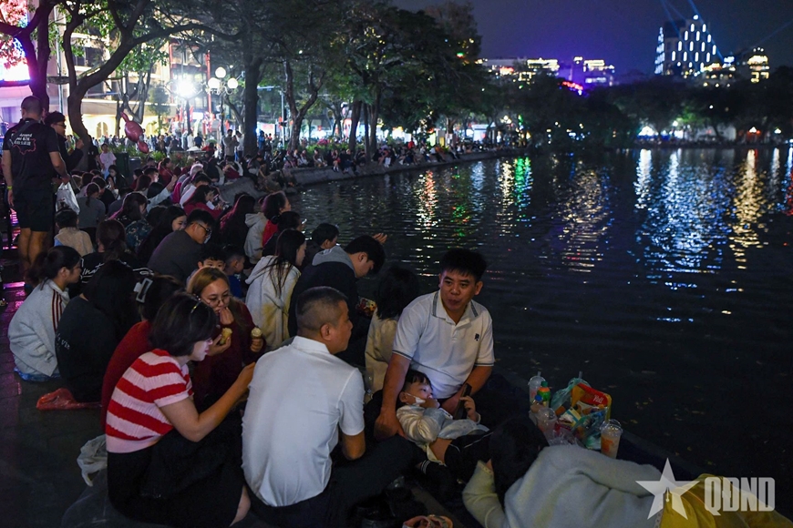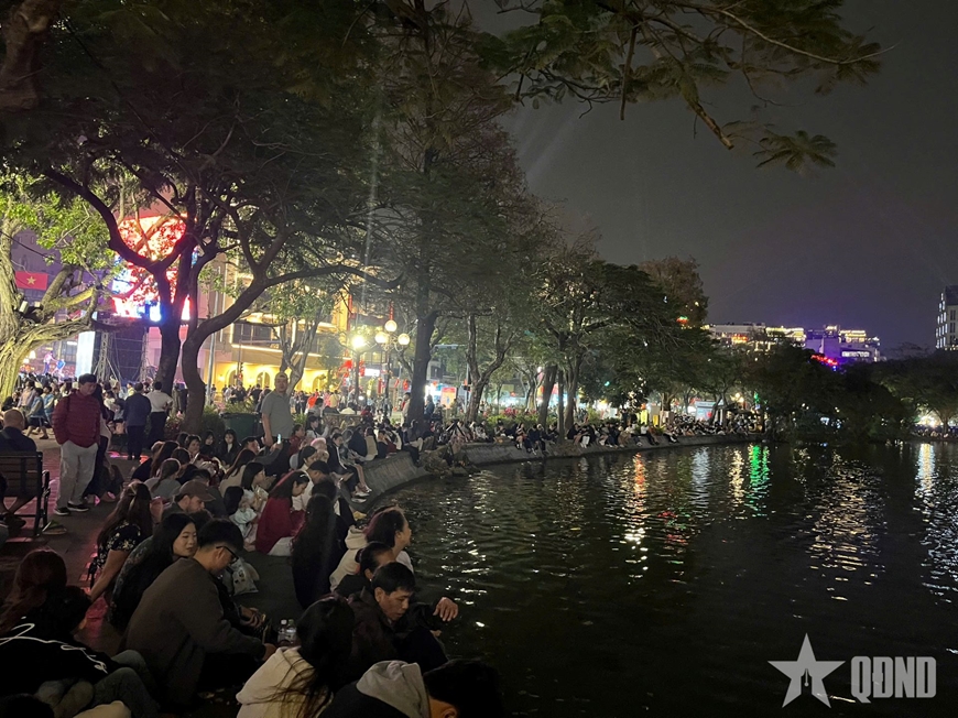 Càng gần thời khắc giao thời sang năm Bính Ngọ 2026, các tuyến phố xung quanh Hồ Hoàn Kiếm lại càng nhộn nhịp. Mọi người đều cố gắng tìm những vị trí đẹp nhất để chờ đón biểu diễn pháo hoa đón chào năm mới.