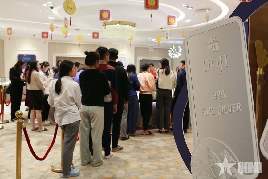 Tại trụ sở thương hiệu vàng DOJI tại số 5 phố Lê Duẩn hay tại “phố vàng” Trần Nhân Tông, người dân xếp hàng dài chờ tới lượt giao dịch vàng. Chia sẻ với phóng viên Báo Quân đội nhân dân, nhiều người dân cho biết muốn đi giao dịch sớm trước ngày vía Thần tài để vừa cầu may và vừa tránh không khí quá đông đúc vào ngày này.