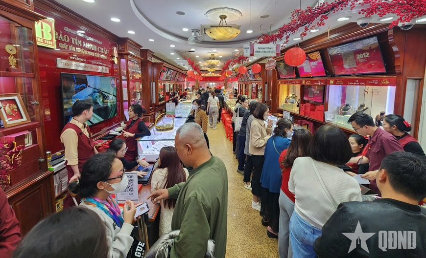 Dưới đây là một số hình ảnh về không khí người dân đi giao dịch vàng trước ngày Vía Thần tài do phóng viên Báo Quân đội nhân dân ghi nhận: