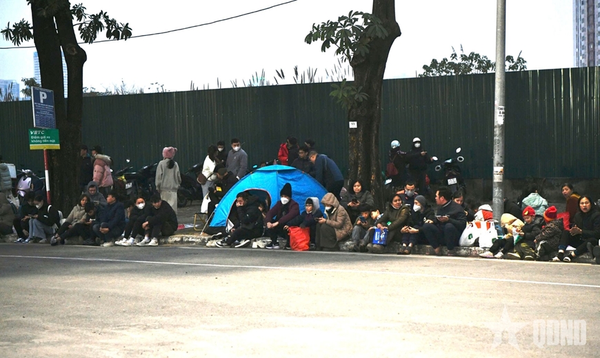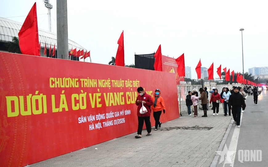 Ngay từ cuối buổi chiều 23-1 tại khu vực Sân vận động quốc gia Mỹ Đình, rất đông người dân đã có mặt từ sớm để chờ đón màn pháo hoa đặc biệt chào mừng thành công của Đại hội đại biểu toàn quốc lần thứ XIV của Đảng.