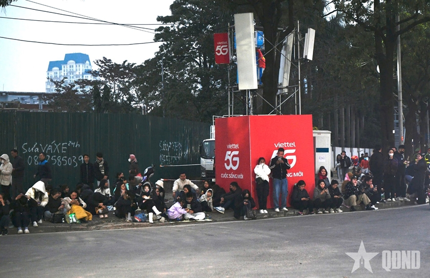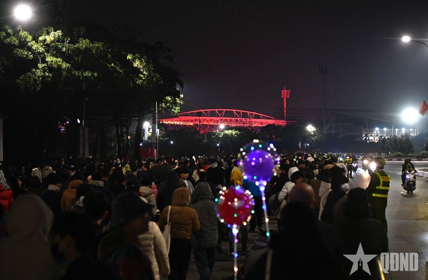 | Không khí hào hứng chờ đợi pháo hoa ở các tuyến phố bên ngoài Sân vận động quốc gia Mỹ Đình. |