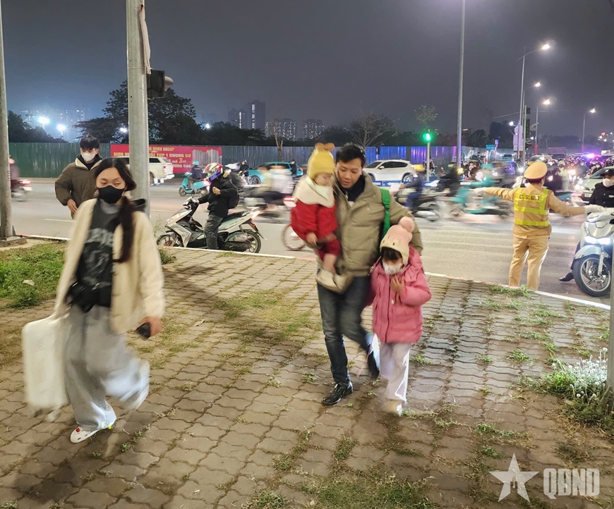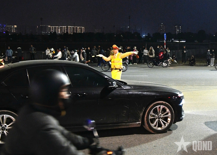 | Tại nút giao đường Lê Quang Đạo và tuyến gom Đại lộ Thăng Long, lực lượng Cảnh sát giao thông đã tổ chức phân luồng giao thông, để tránh ùn tắc trong khu vực bắn pháo hoa. |