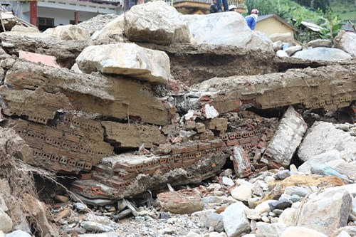 Cảnh tượng khi đó rất kinh hoàng. Lúc đợt lũ thứ 2 ập tới, căn nhà bên trên nhà tôi bị cơn lũ đầu tiên xô đổ cả vào cột điện thì qua cơn lũ thứ 2 liền bị cuốn phăng luôn. Còn nhà tôi thì lũ quét qua không còn một thứ gì. Móng nhà bây giờ, như các anh thấy đấy, trơ cả chân móng. Nhà tôi bây giờ chỉ còn là bãi đất không" - ông Thanh ngậm ngùi nói.