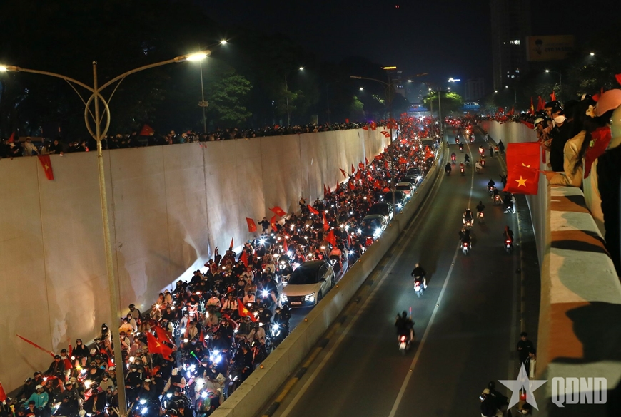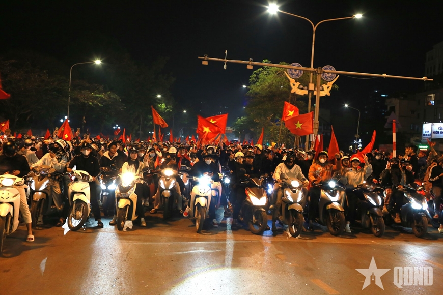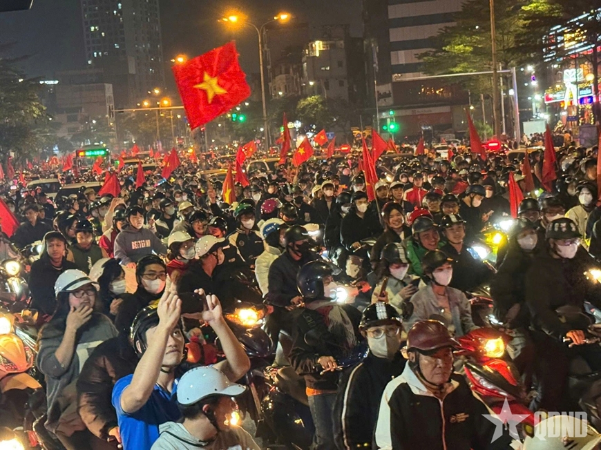Tối 18-12, sau chiến thắng nghẹt thở của Đội tuyển bóng đá nam U22 Việt Nam trước U22 Thái Lan ở trận chung kết SEA Games 33 với tỷ số chung cuộc 3-2 để giành Huy chương Vàng, người dân Thủ đô Hà Nội đã đổ ra các tuyến phố ăn mừng chiến thắng.