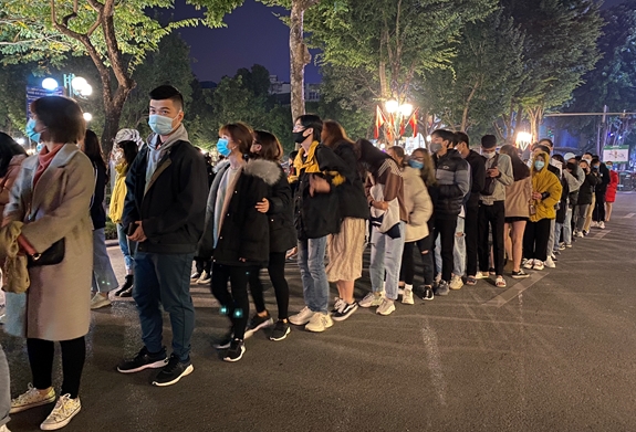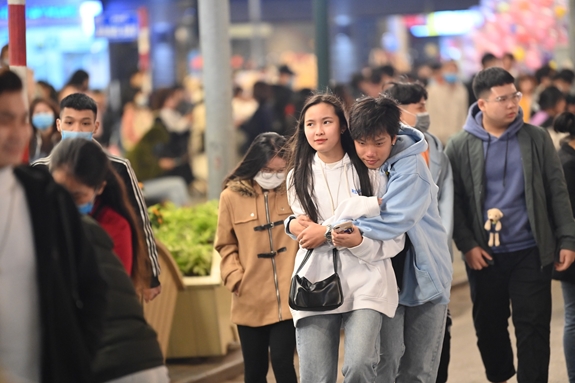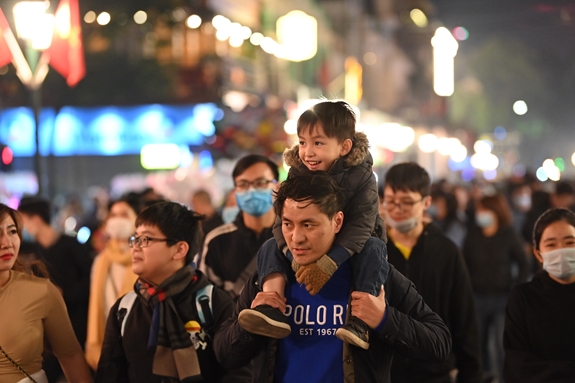 Dù thời tiết khá lạnh, nhưng người dân Thủ đô vẫn đổ ra các tuyến phố chờ đợi thời khắc giao thời sang năm 2021.