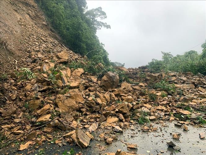 Một điểm sạt lở đất đá trên đường mòn Hồ Chí Minh nhánh Tây, đoạn qua địa bàn tỉnh Quảng Trị. Ảnh: TTXVN