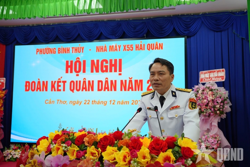 Trong năm, Nhà máy X55 đã tích cực phối hợp và hỗ trợ địa phương thực hiện nhiều hoạt động an sinh xã hội thiết thực. Cụ thể, đơn vị đã hỗ trợ xây dựng 1 căn nhà trị giá 83 triệu đồng cho gia đình bà Nguyễn Thị Thu Nga (khu vực 2, phường Bình Thủy) có hoàn cảnh đặc biệt khó khăn; thăm, tặng quà và động viên cháu Trần Thị Thanh Thùy (Trường Tiểu học Bình Thủy) với số tiền 8,5 triệu đồng theo chương trình “Hải quân nhận đỡ đầu con ngư dân”.
