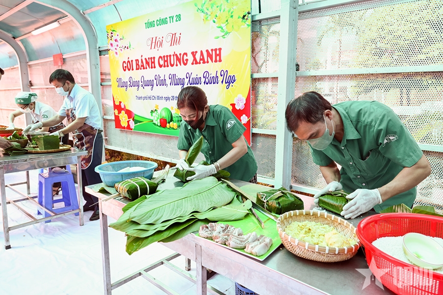 Trong khuôn khổ của chương trình, các đơn vị thuộc Tổng Công ty 28 đã tham gia hội thi “Gói bánh chưng xanh”, tạo không khí hào hứng, sôi nổi trước thềm năm mới Bính Ngọ.