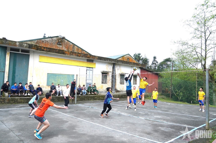 | Giao lưu bóng chuyền giữa cán bộ, chiến sĩ và đoàn viên, thanh niên xã Sơn Vĩ. |