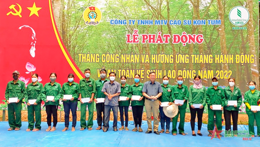 Thực hiện Tháng công nhân và Tháng hành động về an toàn, vệ sinh lao động năm 2022, Công ty Cao su Kon Tum tiếp tục tuyên truyền nâng cao nhận thức của cán bộ, công nhân viên, lao động về truyền thống vẻ vang của giai cấp công nhân Việt Nam và công tác an toàn, vệ sinh lao động. Tổ chức phong trào lao động giỏi, lao động sáng tạo, luyện tay nghề, nâng bậc thợ, hội thi bàn tay vàng rộng khắp, hiệu quả. Chăm lo tốt đời sống cho đoàn viên công đoàn, công nhân viên, lao động…