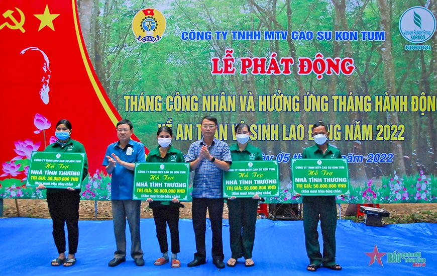 Tại buổi lễ, Công ty Cao su Kon Tum đã tặng 3 ngôi nhà mái ấm công đoàn, 4 ngôi nhà tình thương và nhiều phần quà cho công nhân bị tai nạn lao động, công nhân có hoàn cảnh khó khăn, công nhân có thời gian công tác từ 20 năm trở lên đạt loại A.