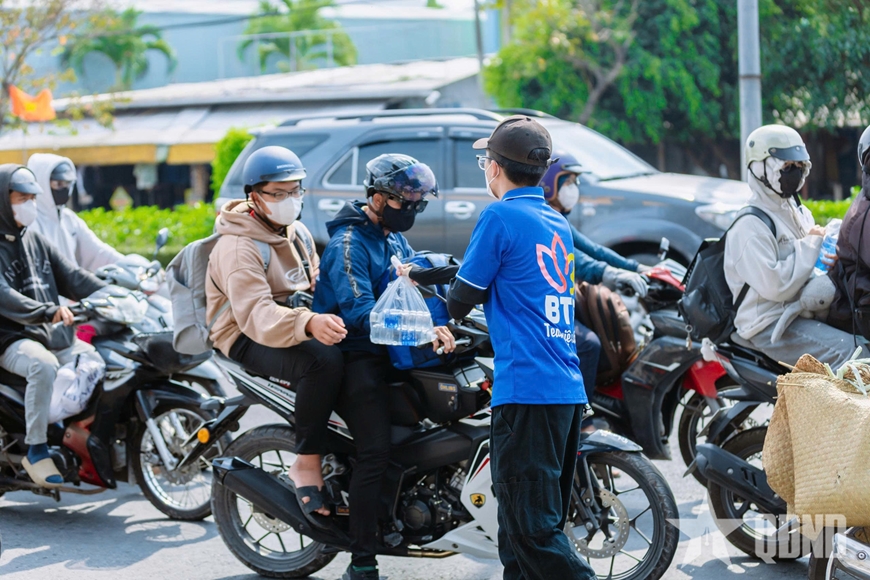 Hình ảnh những bạn trẻ miệt mài trao nước giữa thời tiết nắng nóng đầu xuân đặc trưng của Nam Bộ đã để lại nhiều ấn tượng đẹp trong lòng người dân trên hành trình dài trở lại thành phố học tập và công tác.