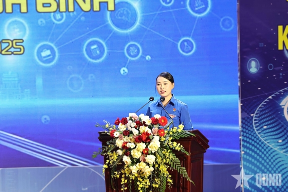 Đại diện thế hệ trẻ phát biểu hưởng ứng lễ phát động Phong trào "Bình dân học vụ số". |