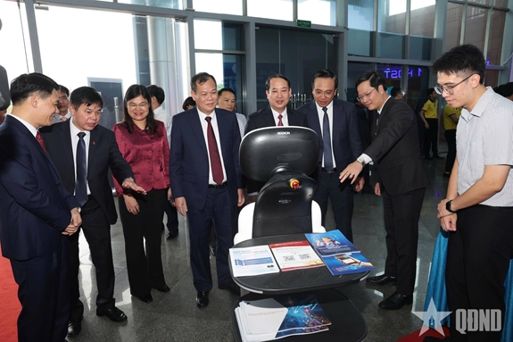 Các đại biểu tham quan các mô hình công nghệ số. |