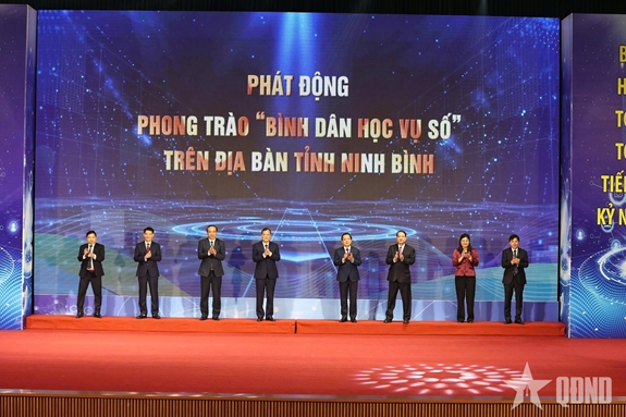 Các đồng chí lãnh đạo tỉnh thực hiện nghi thức phát động Phong trào “Bình dân học vụ số” trên địa bàn tỉnh. |
