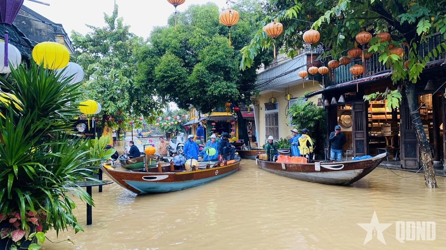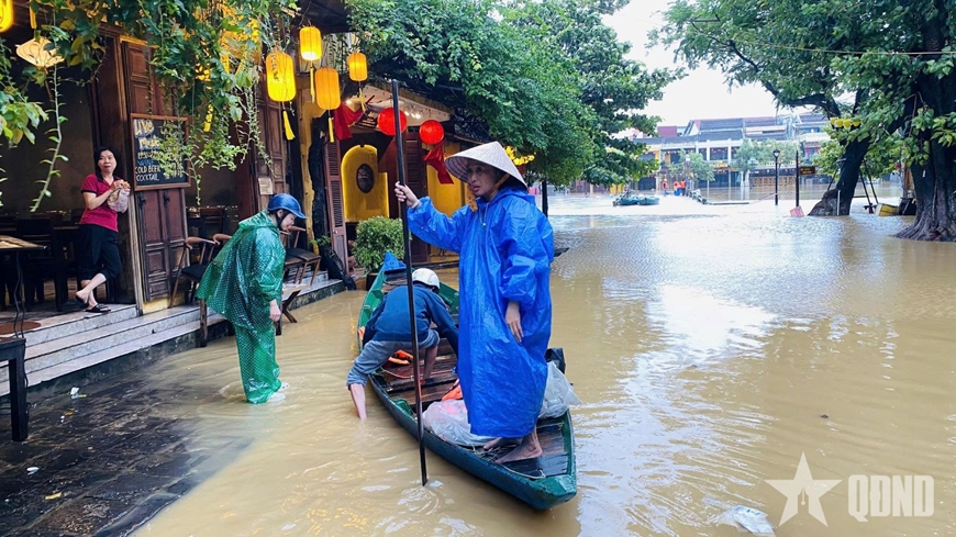 Lũ lên nhanh và gây ngập sâu từ 30cm đến 1m trên các tuyến phố nên từ sáng nay, người dân trong khu phố cổ phải dùng thuyền để đi lại. Người dân ở bên kia cầu An Hội bơi thuyền ra ngoài để mua nhu yếu phẩm. Chủ cửa hàng lưu niệm trên đường Trần Phú - khu vực chưa ngập nước - đã thuê sẵn giàn giáo để kê cao hàng hóa nhằm tránh tình trạng nước lên nhanh gây hư hại tài sản. Một khu vực nằm gần phố cổ Hội An là chợ cá Thanh Hà cũng chìm trong biển nước. Các tiểu thương ở chợ cá đã tạm dừng hoạt động mua bán.
