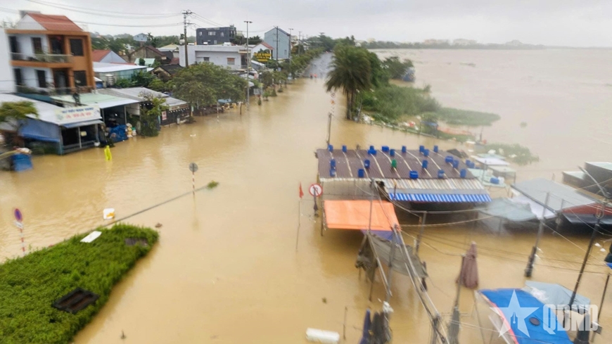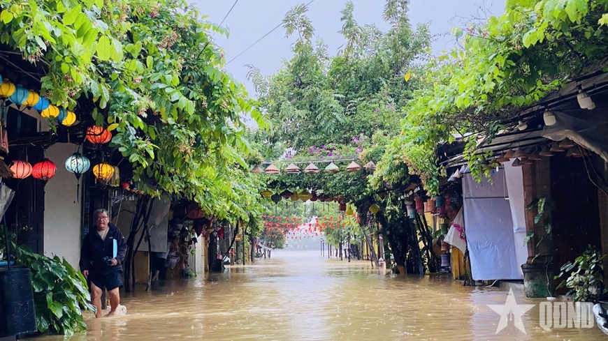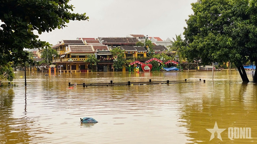 Từ rạng sáng 27-10, mực nước lên nhanh và tiếp tục gây ngập sâu các tuyến đường trong khu phố cổ như Nguyễn Thái Học, Hoàng Văn Thụ, Lê Lợi, Châu Thượng Văn. Sau khi tràn lên đường Bạch Đằng, nước lũ đang ở mức mấp mé di tích Chùa Cầu. Cầu An Hội - cây cầu nối đôi bờ sông Hoài nằm ngay giữa trung tâm phố cổ đã bị lũ nhấn chìm. Lực lượng chức năng đang túc trực để dọn dẹp rác nhằm khơi thông dòng chảy.