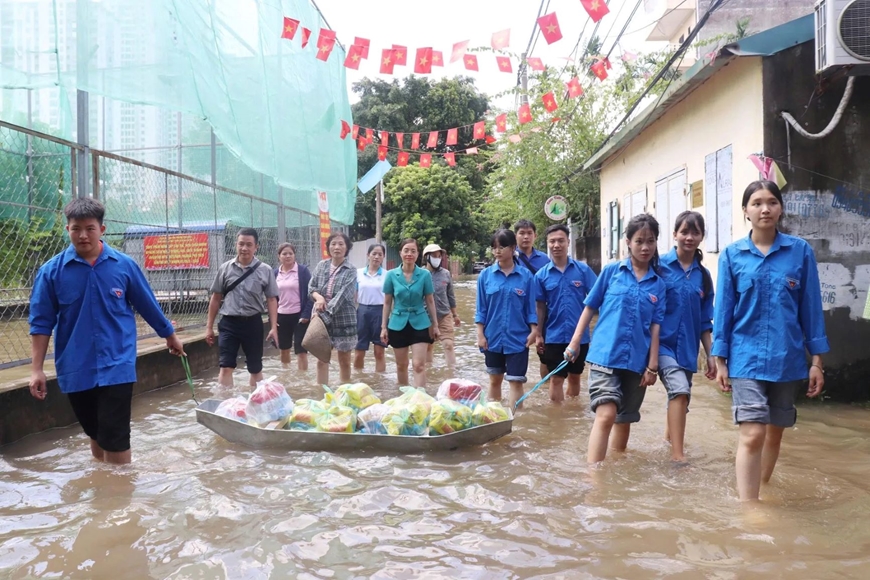 Tuổi trẻ TP Hà Nội vận chuyển nhu yếu phẩm hỗ trợ người dân các khu vực bị ngập lụt do bão số 10. |