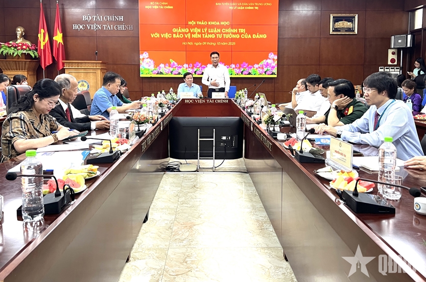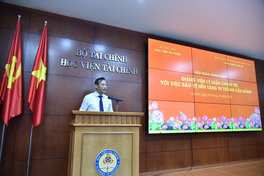 Tại hội thảo, TS Nguyễn Văn Bình, Bí thư Đảng ủy, Chủ tịch Hội đồng trường, Học viện Tài chính nhận định, trong bối cảnh hiện nay, khi các thế lực thù địch, phản động không ngừng tìm cách xuyên tạc, phủ nhận vai trò lãnh đạo của Đảng, thì bảo vệ nền tảng tư tưởng của Đảng càng trở thành nhiệm vụ trọng yếu, sống còn. Bảo vệ nền tảng tư tưởng không chỉ là nhiệm vụ của cơ quan tuyên giáo, không chỉ là công việc trên diễn đàn lý luận, mà phải bắt đầu từ thực tiễn đời sống-từ việc chăm lo con người, chăm lo cán bộ, giảng viên, sinh viên, người lao động.