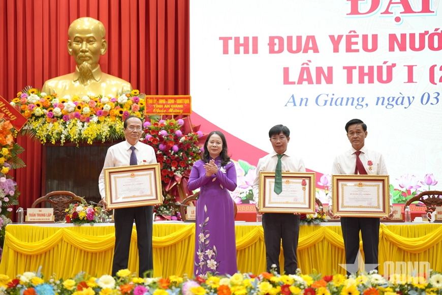 Phát biểu chỉ đạo, Phó chủ tịch nước Võ Thị Ánh Xuân biểu dương những thành tựu nổi bật của An Giang: Kinh tế tăng trưởng ổn định, cơ cấu chuyển dịch tích cực, văn hóa - xã hội tiến bộ, đời sống nhân dân được cải thiện, công tác xây dựng Đảng và hệ thống chính trị được chú trọng, quốc phòng, an ninh được bảo đảm, quan hệ đối ngoại mở rộng.