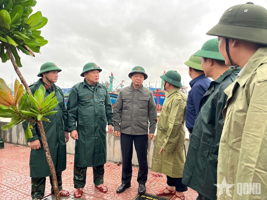 | Phó thủ tướng Trần Hồng Hà kiểm tra khu neo đậu tàu thuyền tránh trú bão tại phường Quy Nhơn, tỉnh Gia Lai. |