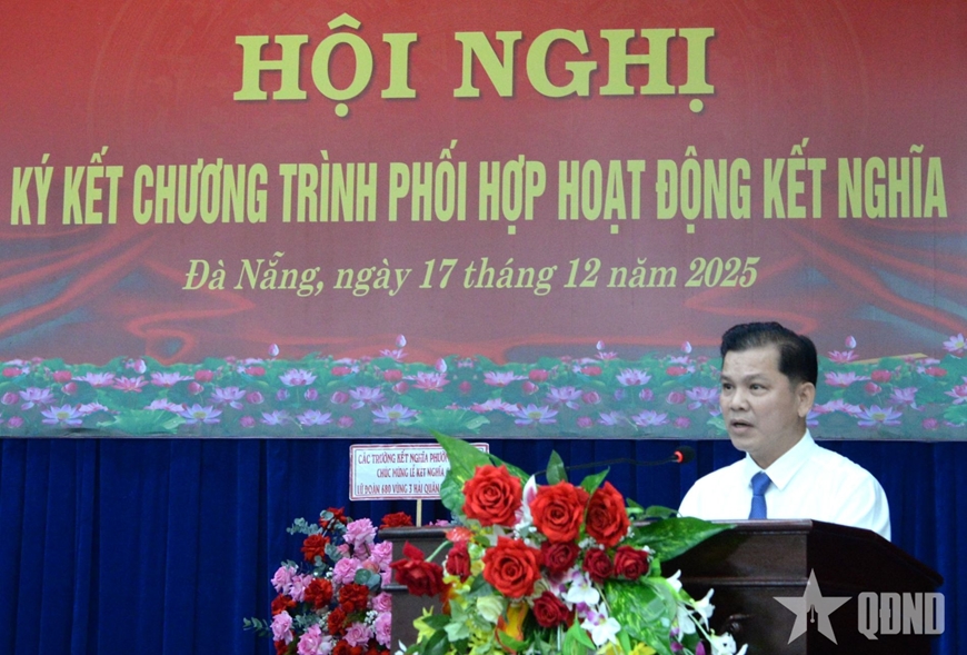 | Thượng tá Nguyễn Bá Ngọc, Chủ nhiệm Chính trị Lữ đoàn 680 thông qua quy chế hoạt động kết nghĩa. |