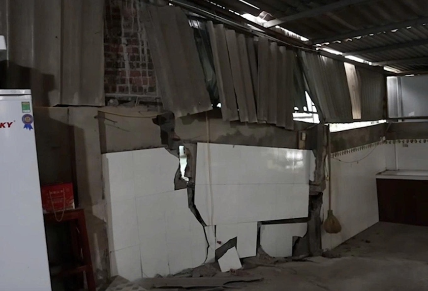Đặc biệt, từ khoảng 18 giờ ngày 21-4, tình trạng sạt lở diễn ra mạnh, gây sụt lún nghiêm trọng, ảnh hưởng trực tiếp đến nhiều công trình nhà ở và hạ tầng trong khu vực.