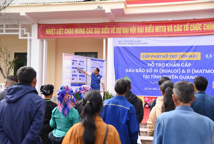 Chiều 16-10, những hộ gia đình đầu tiên tại xã Xín Mần (tỉnh Tuyên Quang) đã được nhận hỗ trợ tiền mặt đa mục đích. Khoản hỗ trợ giúp người dân chủ động chi trả cho các nhu cầu thiết yếu như thực phẩm, thuốc men, quần áo, sửa chữa nhà cửa và các vật dụng sinh hoạt cần thiết, tùy theo điều kiện của từng hộ. Trước khi cấp phát, Plan International Việt Nam và cán bộ xã đã tổ chức tuyên truyền, hướng dẫn người dân về cách sử dụng hiệu quả nguồn hỗ trợ, đồng thời cung cấp thông tin và kiến thức cơ bản về bảo vệ trẻ em trong rủi ro thiên tai, hướng dẫn giữ gìn vệ sinh cá nhân và sức khỏe sinh sản cho trẻ em gái.