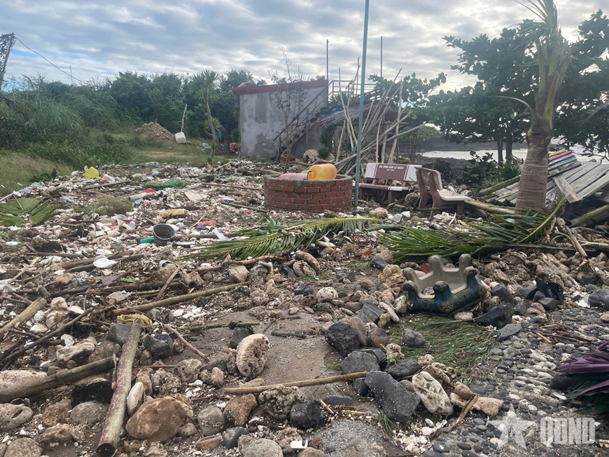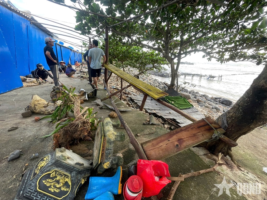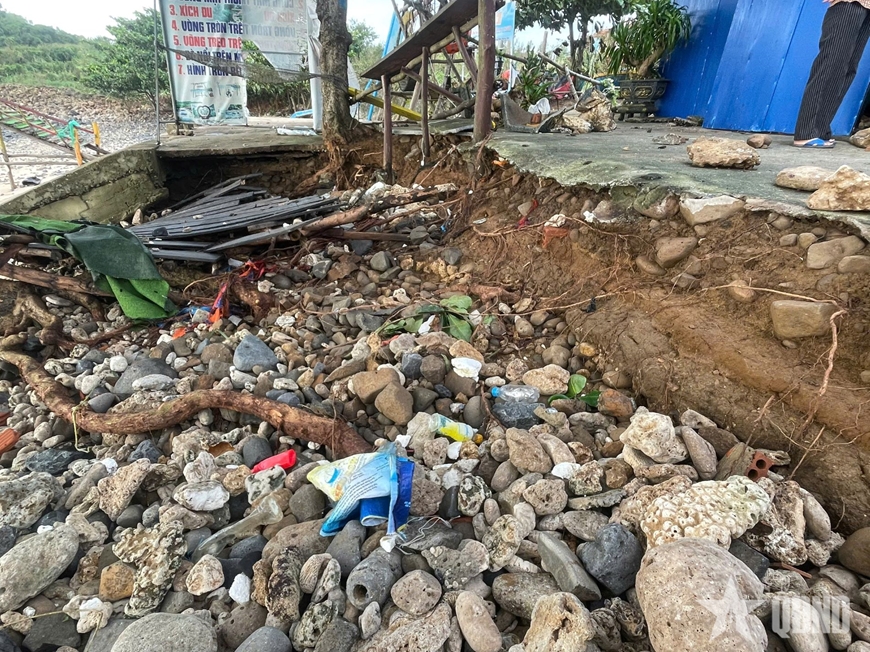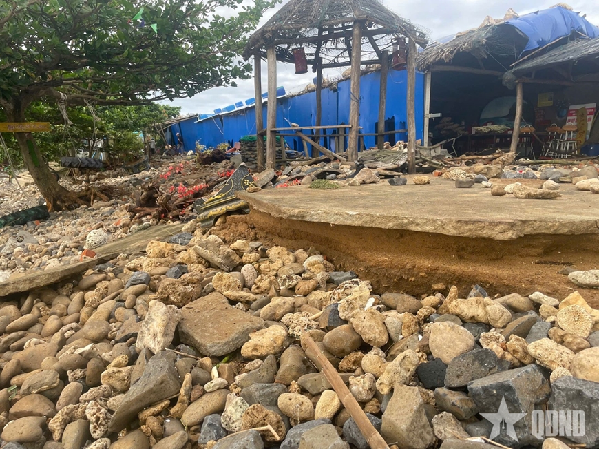 | Sóng biển dâng cao gây xói lở khu vực bờ biển Châu Me (phường Sa Huỳnh, tỉnh Quảng Ngãi). Ảnh: NGUYỄN ĐỨC MINH |