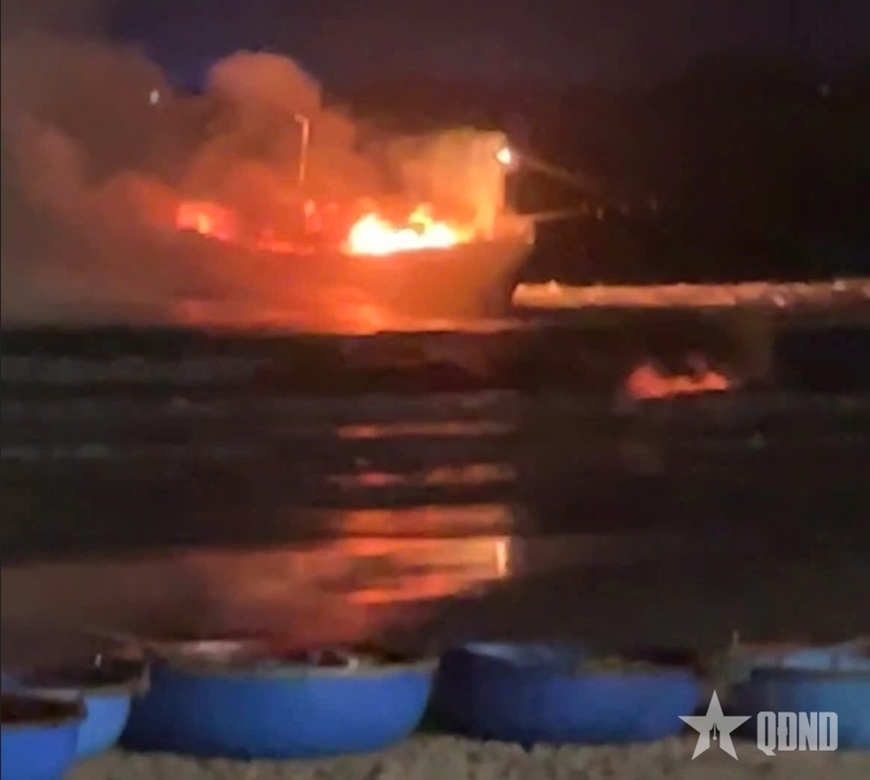 Ngay sau khi nhận tin báo, địa phương huy động các lực lượng cùng người dân sở tại khẩn trương phối hợp dập lửa, dùng thúng để di chuyển, sơ tán tài sản trên tàu vào bờ. Thời điểm này, do gió to, đám cháy bùng phát mạnh, ngọn lửa lớn, gây khó khăn cho việc chữa cháy.
