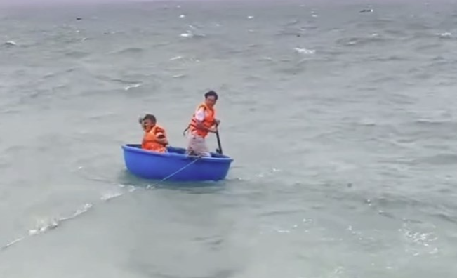 | Ông L.V.S (37 tuổi) ở thôn Tây An Hải và ông Phan Duy Quang chèo thúng đi cứu ông D.Q.C. Ảnh: laodong.vn |