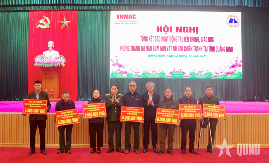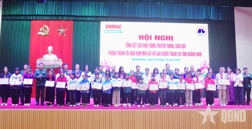 Tại hội nghị, Ban tổ chức đã trao quà hỗ trợ cho 10 nạn nhân bom mìn có hoàn cảnh khó khăn; đồng thời khen thưởng 2 tập thể và 37 cá nhân đạt giải trong cuộc thi “Đại sứ học đường chung tay phòng tránh tai nạn bom mìn, vật nổ năm 2025”.