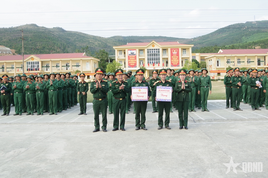 Thủ trưởng Bộ CHQS tỉnh Quảng Ninh trao thưởng các chi đoàn đạt thành tích xuất sắc tham gia hội thao trong “Ngày đoàn viên”.