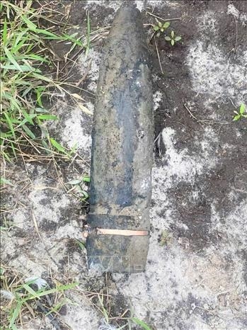 | Các quả đạn pháo còn sót lại sau chiến tranh được người dân phát hiện trong quá trình lao động sản xuất. |