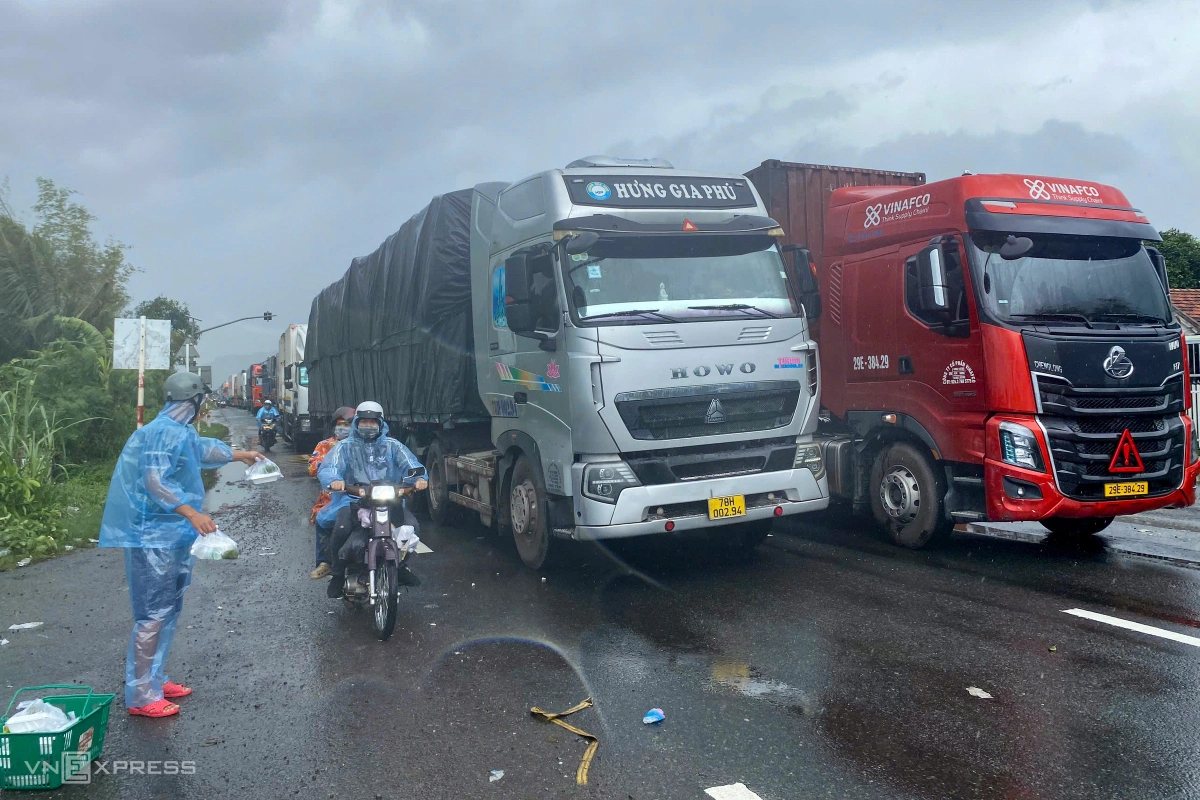 Mưa lũ khiến nhiều đoạn Quốc lộ 1 qua Khánh Hòa, Đắk Lắk ngập và hư hỏng, giao thông tê liệt, tài xế phải "đứng bánh" suốt 12 tiếng.