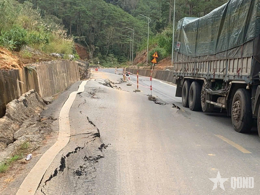 Theo ghi nhận, phần mặt đường bị đội lên cao khoảng 1,2m, tạo thành gồ cao lớn chắn ngang tuyến. Cùng với đó, một vết nứt dài khoảng 100m chạy dọc mặt đường, làm kết cấu nền đường bị phá vỡ, đe dọa nguy cơ sạt lở và gây mất an toàn cho các phương tiện lưu thông. Một số chỗ mặt đường bị nứt toác, nhựa đường bong tróc, tạo thành hố và gờ cao, rất khó quan sát khi trời tối.
