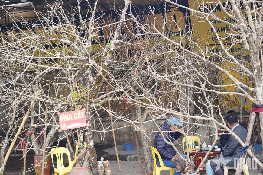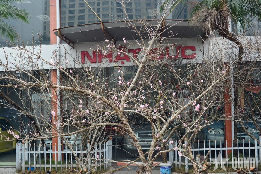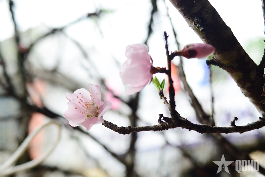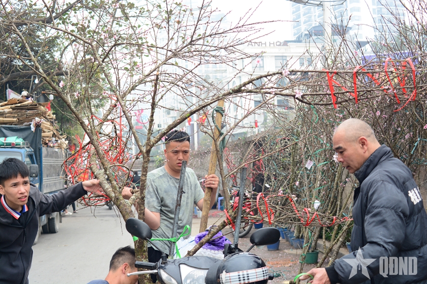 Sắc hoa rừng xuống phố: Những cành đào đá bà con trồng nơi núi cao được các thương lái thu mua về phục vụ người dân Thủ đô chơi Tết.