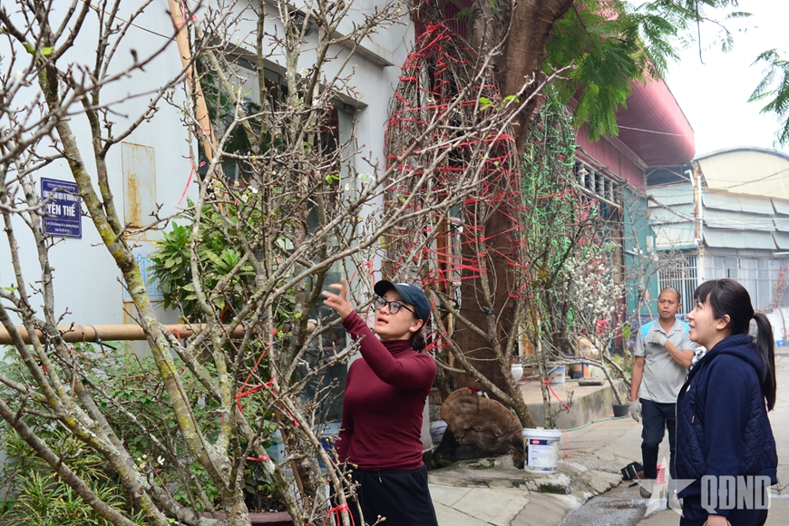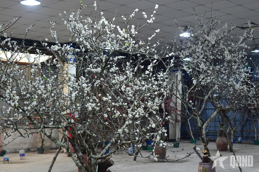| Cùng với đào đá, hoa mận trắng thu hút nhiều khách hàng trong dịp Tết. |