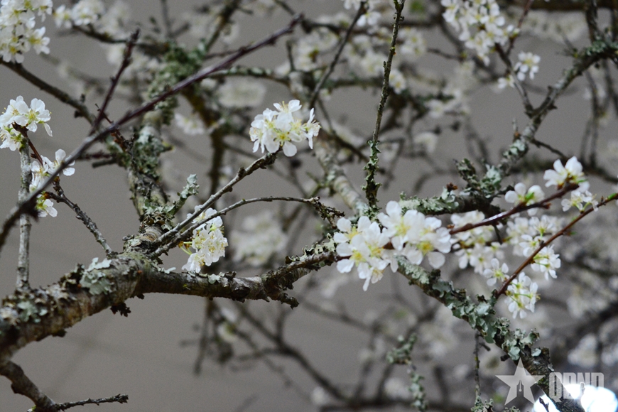 | Những cành trắng, rêu mốc mang đến một sắc xuân rất riêng có. |