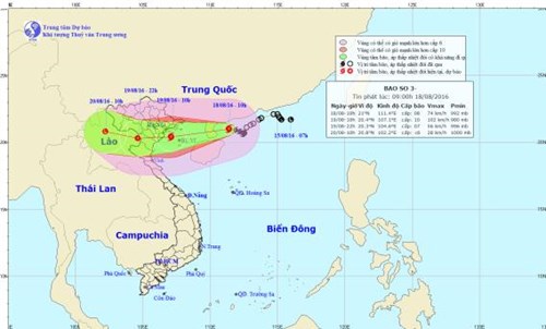 Hồi 10 giờ ngày 18-8, vị trí tâm bão số 3 (Dianmu) ở vào khoảng 21,0 độ Vĩ Bắc; 111,4 độ Kinh Đông, trên vùng biển phía Đông bán đảo Lôi Châu (Trung Quốc). Sức gió mạnh nhất ở vùng gần tâm bão mạnh cấp 8-9 (60-90km/giờ), giật cấp 10-12. Dự báo trong 24 giờ tới, bão số 3 di chuyển chủ yếu theo hướng Tây, sau đó có khả năng đổi hướng di chuyển theo hướng Tây Tây Nam, mỗi giờ đi được khoảng 15-20km và còn tiếp tục mạnh thêm, ảnh hưởng trực tiếp đến các tỉnh phía Đông Bắc Bộ và Bắc Trung Bộ.