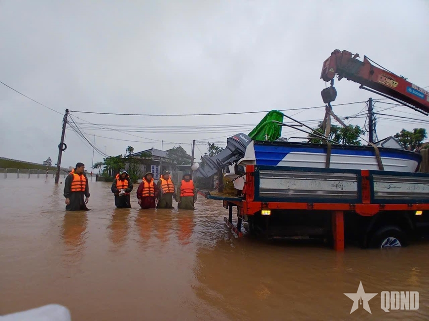| Bộ CHQS tỉnh Hà Tĩnh điều động nhiều phương tiện tàu, xuồng hỗ trợ công tác cứu hộ, cứu nạn. |
