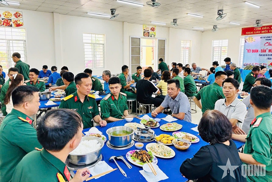 | Bữa cơm "Tết đoàn viên" tại Trung đoàn Minh Đạm. |