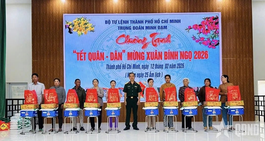 Chương trình “Tết quân dân” Xuân Bính Ngọ 2026 của Trung đoàn Minh Đạm đã thiết thực nâng cao đời sống cán bộ, chiến sĩ và nhân dân, xây dựng tình đoàn kết quân dân gắn bó, chăm lo tốt hậu phương Quân đội, gắn kết giữa đơn vị và gia đình chiến sĩ.