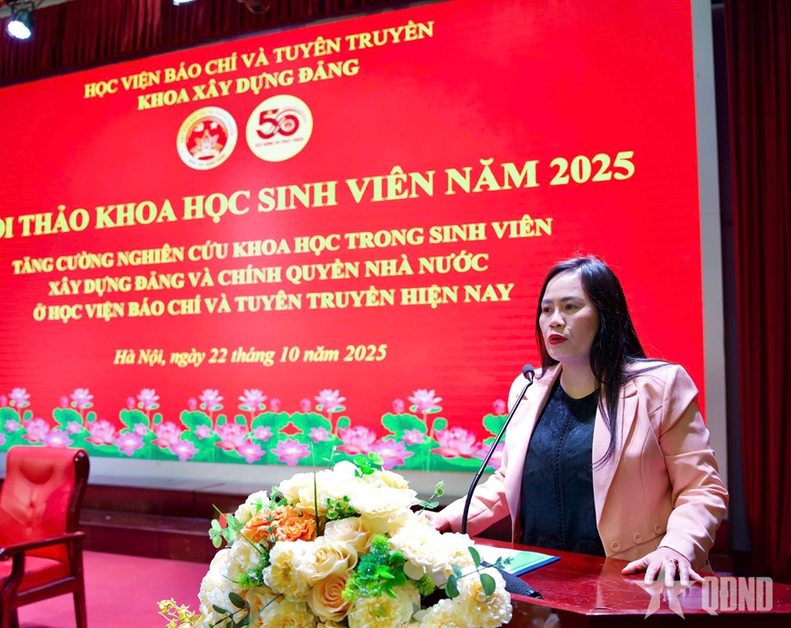 Báo cáo đề dẫn hội thảo, TS Nguyễn Thị Ngọc Loan cho biết, bước vào giai đoạn mới - giai đoạn đẩy mạnh công nghiệp hóa, hiện đại hóa, chuyển đổi số và hội nhập quốc tế sâu rộng, yêu cầu đặt ra đối với sinh viên ngành Xây dựng Đảng và Chính quyền nhà nước không chỉ dừng ở việc nắm vững lý luận và kỹ năng thực hành chính trị, mà còn cần có năng lực nghiên cứu khoa học, khả năng phát hiện và giải quyết vấn đề thực tiễn bằng tư duy khoa học, phương pháp luận Mác - Lênin và tư tưởng Hồ Chí Minh.