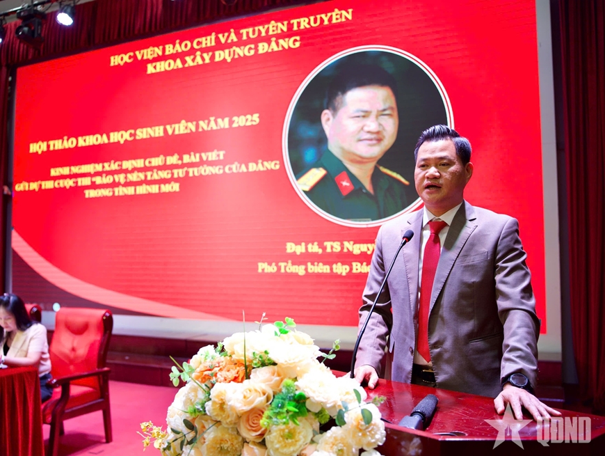 “Tôi muốn chia sẻ thêm một kinh nghiệm với các bạn sinh viên: Hãy gắn việc học tập với nghiên cứu khoa học và tham gia các cuộc thi viết, đặc biệt là các cuộc thi về bảo vệ nền tảng tư tưởng của Đảng. Khi làm được điều đó, các bạn sẽ đạt được nhiều mục tiêu cùng lúc, vừa củng cố kiến thức chuyên môn, vừa rèn luyện tư duy nghiên cứu, đồng thời tạo ra những sản phẩm báo chí chính luận có giá trị thực tiễn”, Đại tá, TS Nguyễn Hồng Hải chia sẻ.