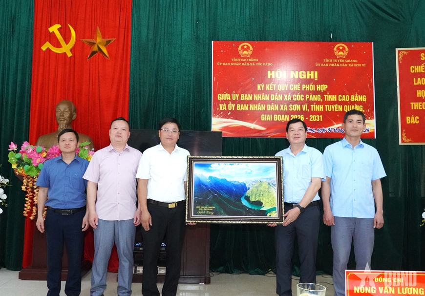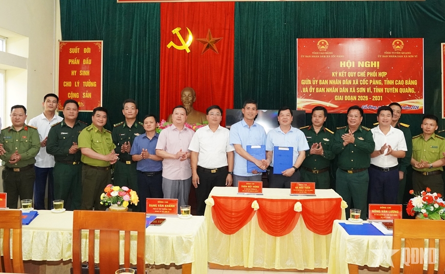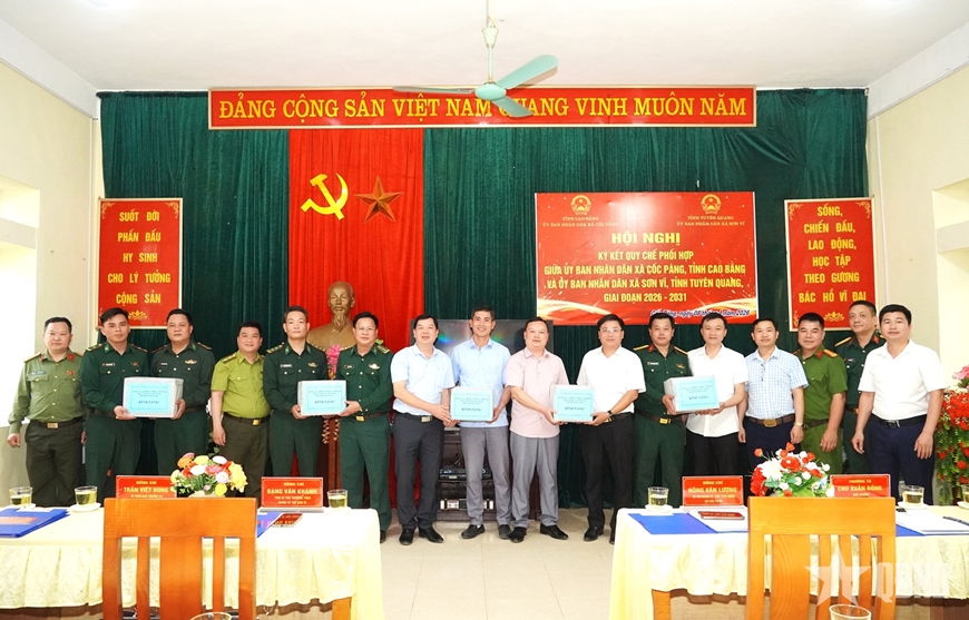 Đại diện UBND xã Cốc Pàng (Cao Bằng) và UBND xã Sơn Vĩ (Tuyên Quang) ký kết Quy chế phối hợp giai đoạn 2026-2031.