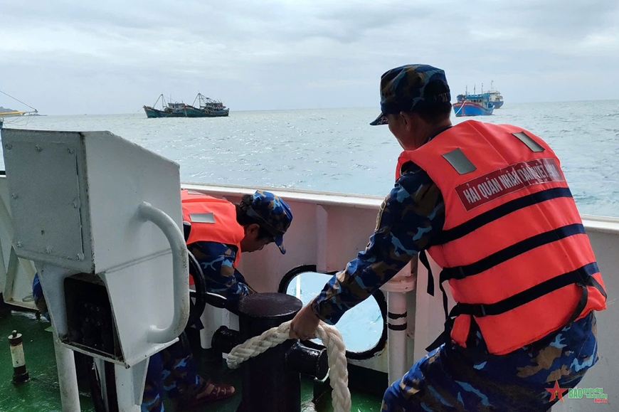 Trước đó, Tàu 417 đang thực hiện nhiệm vụ gần đảo Phú Quý thì nhận lệnh lai kéo Tàu cá QNg 95046 TS bị hỏng máy, thả trôi ở vị trí Bắc đảo Phú Quý khoảng 2 hải lý. Sau gần 2 giờ cơ động, Tàu 417 đã tiếp cận Tàu cá QNg 95046 TS và tổ chức làm dây lai kéo bảo đảm an toàn.