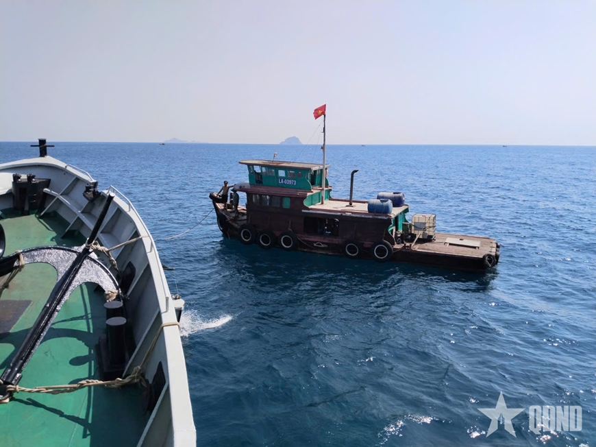 Lúc 8 giờ 30 phút ngày 4-4, Tàu 785, Hải đội 413, Lữ đoàn 955, Vùng 4 Hải quân đã khẩn trương cơ động thực hiện nhiệm vụ cứu kéo một ghe cá bị hỏng máy, trôi dạt trên biển.