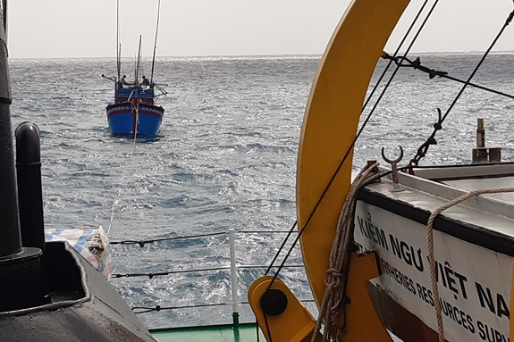 3 giờ sáng 3-8, Tàu KN 412, Chi đội Kiểm ngư 4, Bộ Nông nghiệp và Phát triển Nông thôn đã lai kéo thành công Tàu BĐ 95238 TS và 5 thuyền viên vào đảo Đá Nam an toàn.